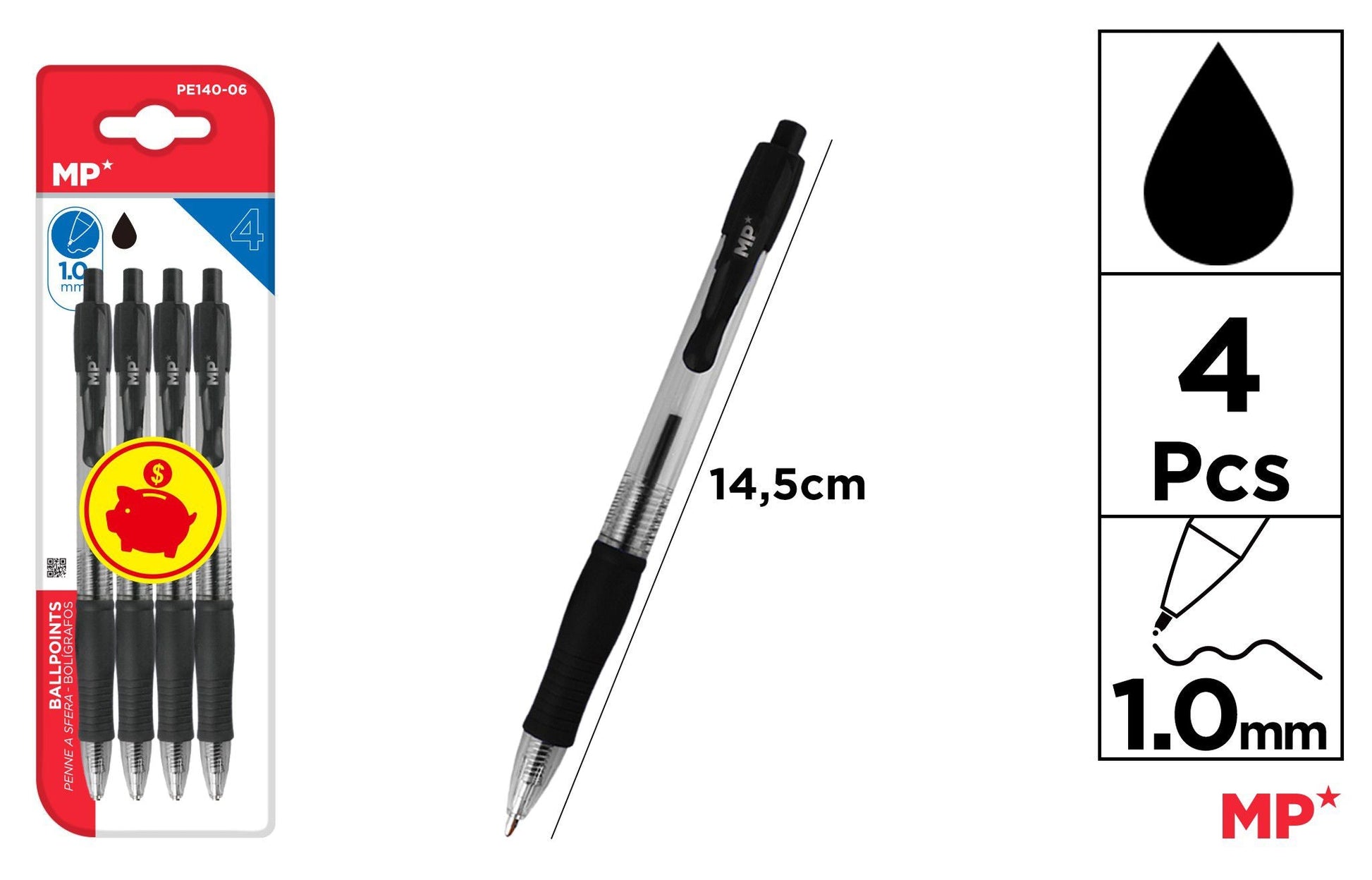 CANETAS PONTA 1.0MM 4UDS